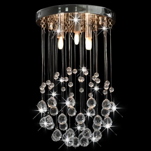 VidaXL Lampadario con Perle di Cristallo a Sfera 3 Lampadine G9 Lampada Soffitto Luce Pendente Base Metallo Argento e Acrilico Trasparente