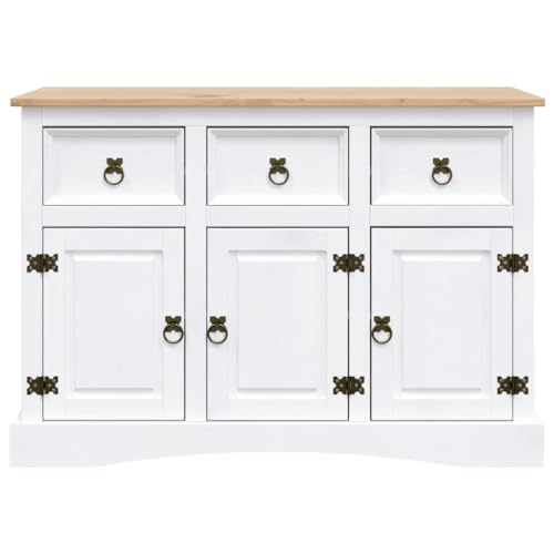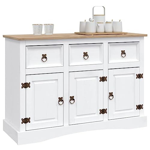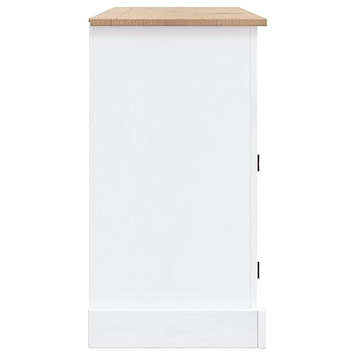 VidaXL Legno Massello di Pino Messicano Credenza Rustica Elegante Robusta Cassettiera Armadietto con Ante e Cassetti Corona Range Bianca 132x43x78 cm