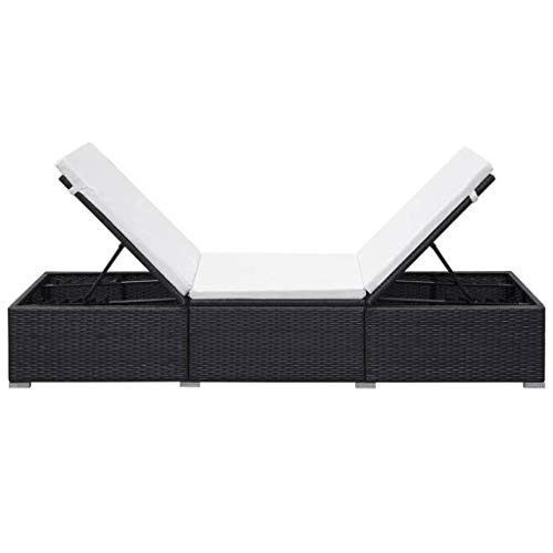 VidaXL 2X Lettini Prendisole con Cuscini Sfoderabili Impermeabile Robusto Sedie a Sdraio da Giardino in Polyrattan Nero e Bianco Crema