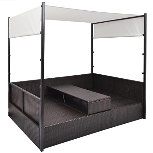 VidaXL Lettino Prendisole Doppio con Baldacchino Elegante Comodo Sdraio Mobile Arredo Giardino Spiaggia Piscina Chaise Longue in Polyrattan Marrone