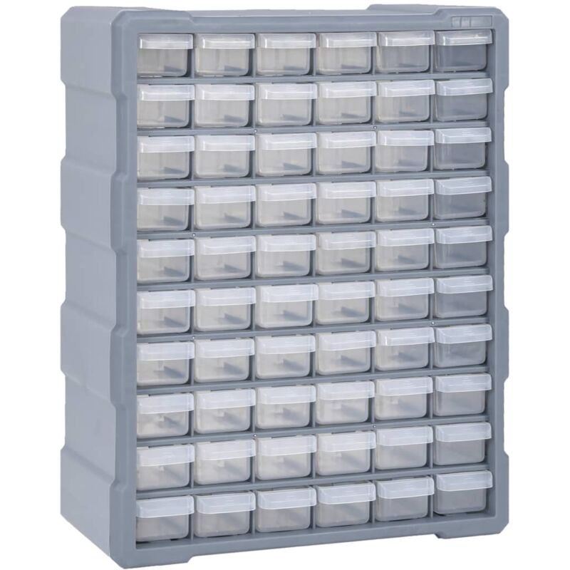 Questo imperdibile mobile contenitore multi-cassetto con un totale di 60 cassetti � progettato per riporre ordinatamente un'ampia variet� di oggetti. Pu� anche essere usato come scatole per kit da cucito o per chiodi. Questa unit� di stoccaggio contiene 60 piccoli cassetti, che tengono i vostri utensili manuali e accessori come i dispositivi di fissaggio organizzati e a portata di mano. L'armadio degli attrezzi � realizzato in plastica resistente agli urti, che � sia durevole che stabile. I cassetti sono realizzati in plastica trasparente in modo da poter identificare rapidamente il contenuto. Questa scatola per artigianato � ideale per riporre dadi, bulloni, viti, chiodi, fissaggi generali e vari componenti. Questo articolo pu� essere montato a parete e pu� essere utilizzato anche singolarmente come organizer per attrezzi. Colore: Grigio Materiale: PP Dimensioni complessive: 38 x 16 x 47,5 cm (L x P x A) Dimensioni cassetto piccolo (ciascuno): 5,2 x 15,2 x 3,5 cm (L x P x A)