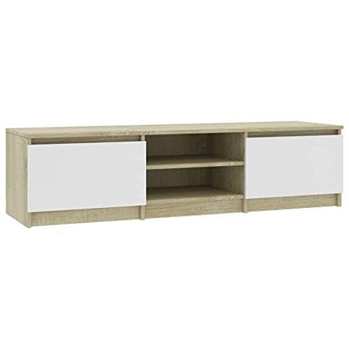 VidaXL Mobile Porta TV Minimalista 2 Ante 2 Scomparti Armadietto Credenza Multimediale Bassa Bianco e Rovere Sonoma 140x40x35,5 cm in Truciolato