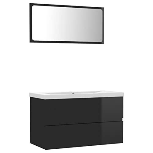VidaXL Set di mobili da bagno, armadio da bagno, armadio da bagno, armadio da bagno, lavabo e specchio da parete, colore: nero lucido