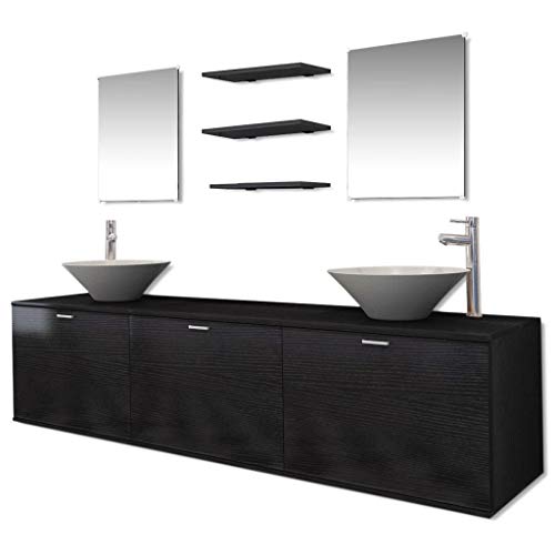 VidaXL Set 10 pz Mobili da Bagno con Specchio Lavabo Armadietto e Rubinetto Nero