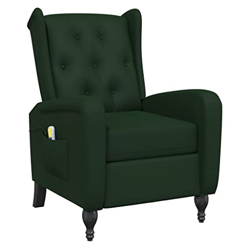VidaXL Poltrona Massaggiante Reclinabile Verde Scuro in Velluto