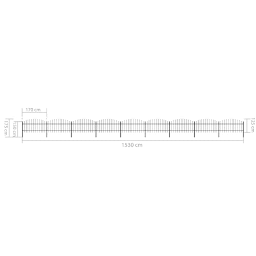 VidaXL Recinzione da Giardino con Punta a Lancia Decorativa Robusta Pannelli e Pali Recinto Barriera Esterna Acciaio Verniciato (1-1,25) x15,3cm Nera