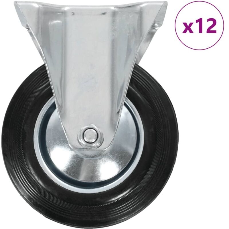 Questo set, composto da 12 rotelle fisse, costituisce l'accessorio perfetto per attrezzature e mobili di piccole dimensioni come banchi da lavoro, carrelli, tavolini da caffè, piantane, scaffali, carrelli della spesa, etc. Le ruote sono realizzate in gomma, un materiale che si distingue per una buona resistenza agli urti e alle vibrazioni e che consente alle ruote di girare in modo fluido e silenzioso. La loro superficie morbida, inoltre, protegge efficacemente il pavimento dai graffi. La struttura in ferro zincato è altamente resistente alla ruggine e garantisce maggiore robustezza e durata delle ruote. Ogni ruota è dotata di una capacità di carico massima di 150 kg. La consegna include 12 rotelle fisse. Colore: Nero Materiale: Gomma e ferro zincato Diametro della ruota: 160 mm Dimensioni della piastra: 135 x 105 mm (L x P) Capacità di carico massima: 150 kg (singola ruota) La consegna include 12 rotelle fisse