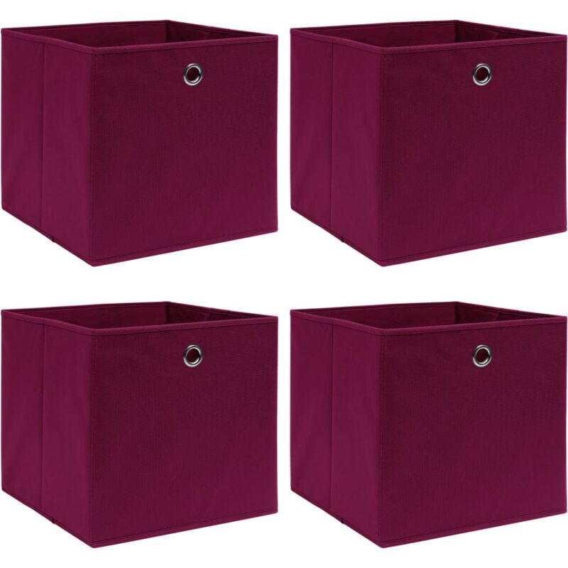 Queste scatole portaoggetti pieghevoli si adattano perfettamente alla vostra casa e offrono un ampio spazio per riporre sciarpe, calzini, biancheria intima, e così via. I pratici contenitori portaoggetti sono realizzati in tessuto non tessuto che li rende piuttosto resistenti. Ciascuna scatola portaoggetti è inoltre dotata di un comodo occhiello in metallo che può essere utilizzato per estrarla dall'armadio, dallo scaffale, dal mobile, ecc. Quando non sono in uso, le scatole portaoggetti possono essere ripiegate per risparmiare spazio. Colore:Rosso Scuro Materiale: Tessuto non tessuto (100% poliestere) Dimensioni: 32 x 32 x 32 cm (L x L x A) Pieghevole La consegna include: 4 Scatole portaoggetti SKU: 288341