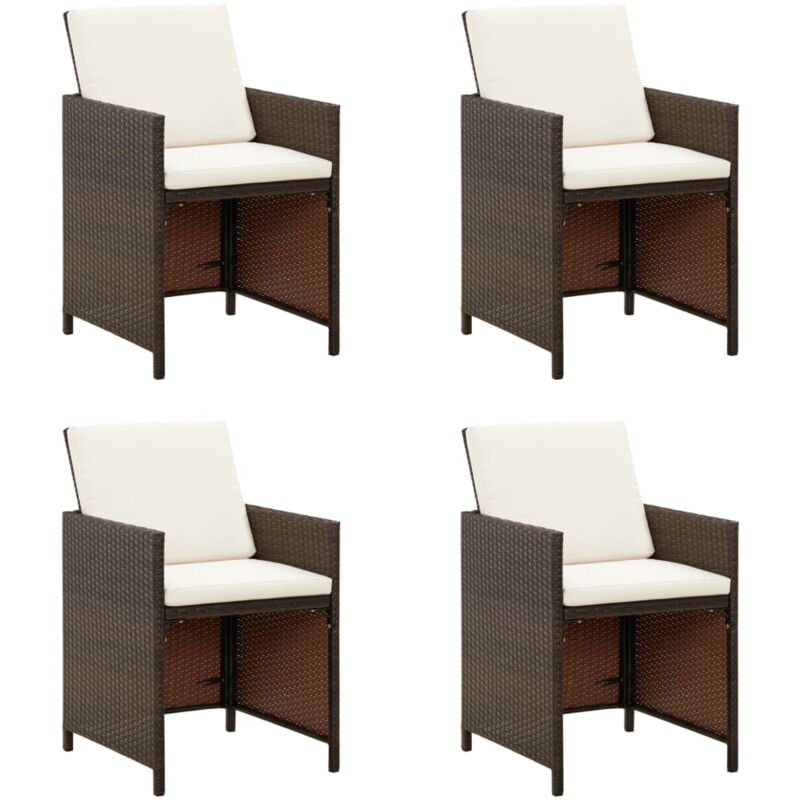 Aggiungete un tocco di stile moderno con questo semplicistico set di sedie da giardino. È stato appositamente progettato per completare il vostro set da pranzo da esterni o semplicemente per essere utilizzato autonomamente. La sedia da esterno attira l'attenzione in qualsiasi ambiente. Con la sua robusta struttura in acciaio avvolta con rattan PE resistente agli agenti atmosferici, la poltrona da patio è a prova di ruggine, offrendo anni di relax di qualità. La sedia da pranzo da giardino è progettata con uno schienale e braccioli per il massimo comfort. Il cuscino del sedile e il cuscino dello schienale inclusi offrono un supporto aggiuntivo durante la seduta. Nota: Per prolungare la vita del vostro arredamento da esterno, vi consigliamo di proteggerlo con una copertura impermeabile. Colore PE rattan: Marrone Colore cuscini: bianco crema Materiale: Rattan PE, acciaio verniciato a polvere, tessuto (100% poliestere) Dimensioni: 52 x 56 x 85 cm (L x P x A) Dimensioni seduta: 46 x 41 cm