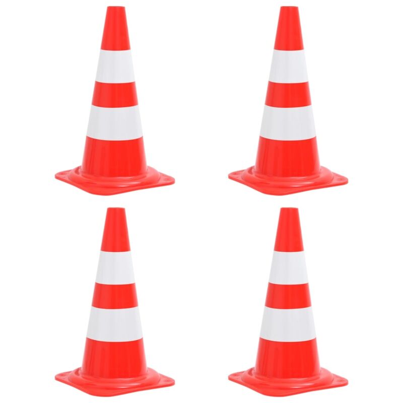 Questo set di coni segnaletici riflettenti è adatto per indirizzare e gestire il traffico sulla strada. Può essere usato anche per isolare delle zone, ad esempio aree di cantiere, e per proteggere i passanti. I coni stradali possono essere facilmente impilati per risparmiare spazio quando non sono in uso. Il colore rosso brillante e la striscia riflettente bianca li rendono altamente visibili al buio. Realizzati in materiale resistente agli agenti atmosferici, i coni sono estremamente robusti e adatti all'uso esterno. Colore: Rosso e bianco Materiale: PE Altezza: 50 cm Dimensioni della base: 29 x 29 cm (L x L) Peso: 900 g Con 2 strisce riflettenti ad alta visibilità La consegna include: 4 Coni stradali SKU: 150945