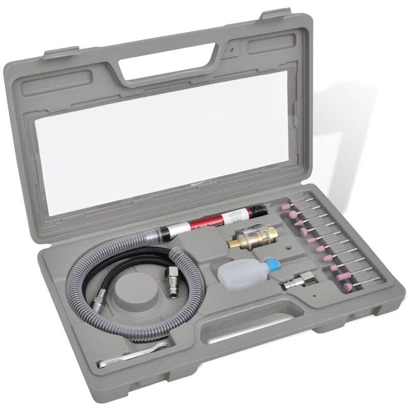 Il set di smerigliatrice pneumatica si adatta al trattamento superficiale di fabbri e lavori di falegnameria, materiale lapideo, industria dei pneumatici e tutti i tipi di operazioni di rettifica nell'industria navale, nell'industria di stampi, nell'industria calzaturiera, nell'industria manifatturiera, nell'industria del vetro organico, nell'industria della plastica ecc. Con questo set di smerigliatrice pneumatica che viene completo di tutti gli accessori a portata di mano, si è in grado di rimuovere facilmente i bordi del materiale, produrre una finitura superficiale pulita su tutte le lavorazioni in metallo e affrontare la molatura, lucidatura e ruggine delle opere. Tutti gli strumenti sono consegnati in una custodia soffiata per una facile conservazione e trasporto. Specificazioni: Velocità: 0-54000 U / min Connessione aria compressa: 1/4" Connessione tubo flessibile: 3/8'' Consumo d'aria: 57 L/min Pressione di esercizio: 6,3 bar Cavo: 123 cm Dimensioni: 335 x 200 x 50 mm Peso