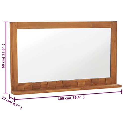 VidaXL Specchio da Parete con Mensole Specchiera a Muro Decorazione Murale Elementi Decorativi Accessori Casa 100x12x60 cm Legno Massello di Teak