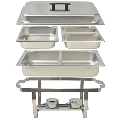 VidaXL 3X Teglie Scaldavivande Acciaio Inossidabile Scalda Cibo Tegame Padella