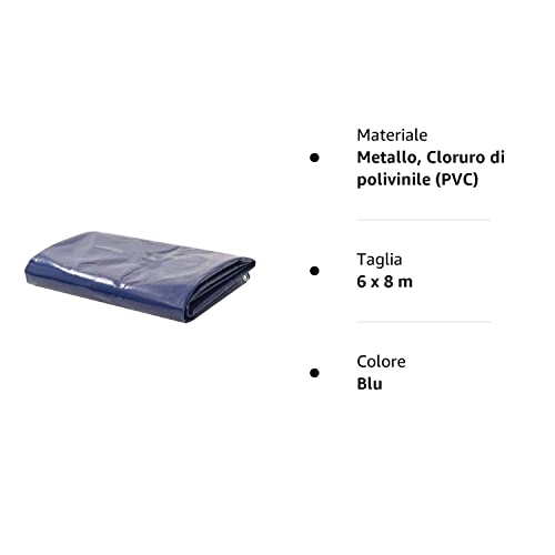 VidaXL Telone 650 g/m² Resistente all'Acqua Anti UV Antistrappo con Occhielli in Metallo Incerato Rivestimento PVC Telo Protezione 6x8 m Blu