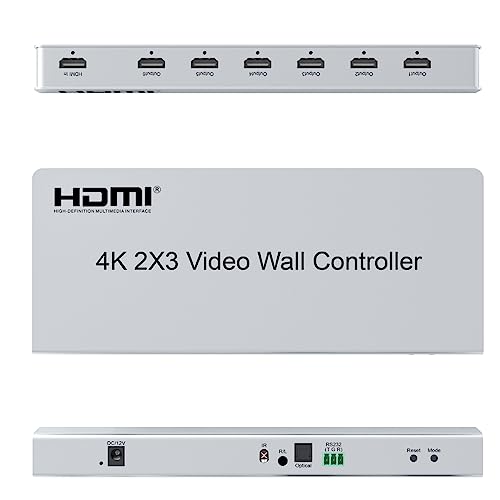 4k @ 30HZ 2x3 Video Wall Controller 1 HDMI Ingressi 6 HDMI Uscita Video Processor Supporta la rotazione dello schermo di 180 gradi supporto 1x1,1x2,1x3,1x4,1x5,1x6,2x1,2x2,2x3,3x1,3x2,4x1,5x1,6x1