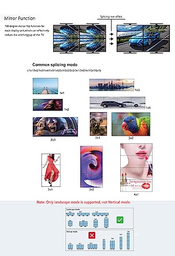 2. Il controller per videowall HDMI è facile da unire. La modalità di giunzione 2X3 può visualizzare immagini ad altissima definizione con risoluzione 3840x2160 / 30HZ (la risoluzione complessiva di 6 schermi invece della risoluzione di un singolo schermo). Supporta anche la modalità di cucitura 1x1,1x2,1x3,1x4,1x5,1x6,2x1,2x2,2x3, 3x1,3x2,4x1,5x1,6x1.