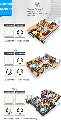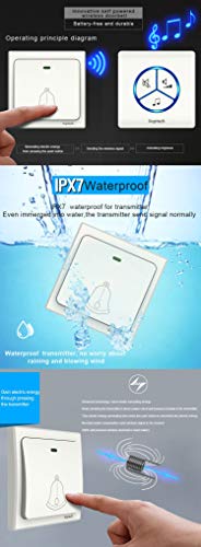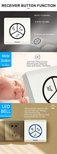 Installazione semplice e non richiede nessuna configurazione: basta collegare il ricevitore a una presa... poi di suonare. L' emettitore può essere fissato al muro con l' aiuto delle viti fornite o del adesivo 3 M incollato all' posteriore. La campanello è garantita impermeabile (IPX7) - alto di gamma e molto resistente: testata fino a 200.000 pressioni