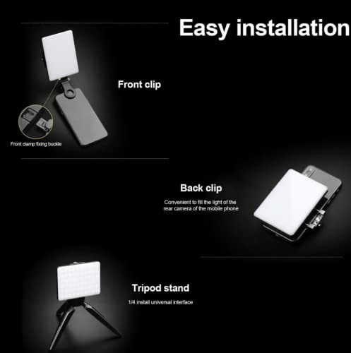 Molti modi per montare: una clip circolare attacca la luce al tuo smartphone, tablet, laptop fino a 18 mm di spessore e mantiene scoperta la fotocamera anteriore. Un supporto per telefono si adatta agli smartphone da 52 a 85 mm di larghezza e installa la luce sul retro del telefono per essere utilizzata come luce di riempimento. Due fori per viti da 1/4" montano direttamente la luce su qualsiasi supporto per luce