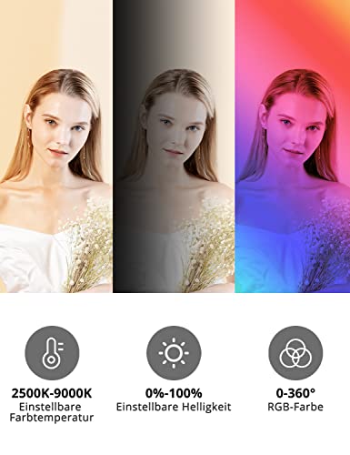 【Temperatura del colore, tonalità e luminosità regolabili】: la luce per foto a LED RGB ha 140 perline. RGB 0-360 ° full color e impostazione della saturazione del colore, controllo della temperatura del colore 2500-9000K, CRI≥95 +, oscuramento continuo da 0-100% per ancora più opzioni per applicazioni creative.