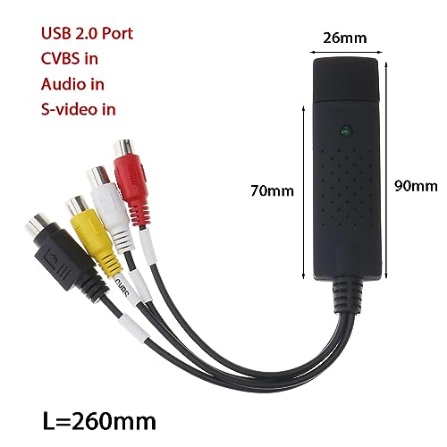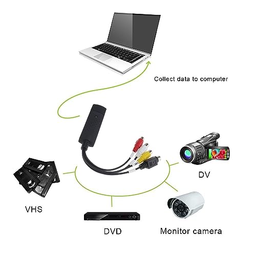 Video Grabber USB Capture Card, Convert Hi8 VHS to Digital DVD for Windows PC, Audio Video Digitize Converter Adapter