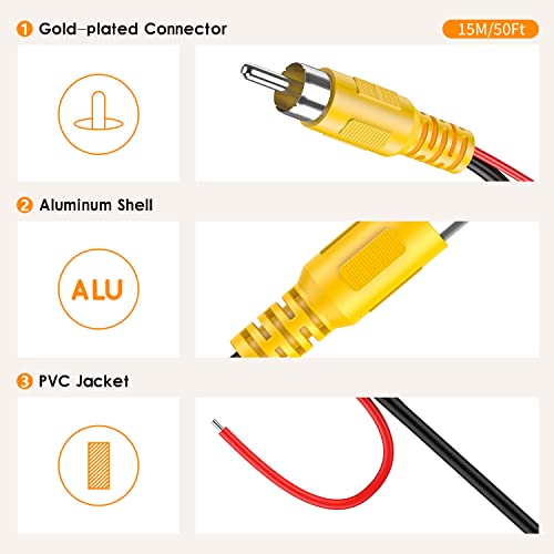 15M 50FT Auto RCA Video Cavo Maschio a Maschio RCA Cavo per Retrovisione Parcheggio Fotocamera Reverse con Trigger di Piombo