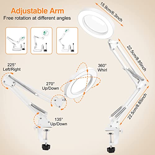 Luce multiuso: con il nostro braccio a molla e la testa della lampada orientabile, l'equilibrio tra l'angolo del fascio e la luminosità può essere facilmente modificato per adattarsi alle tue esigenze speciali in qualsiasi situazione. La testa della lampada può essere ruotata di 350 gradi, su e giù di 220 gradi, puoi proiettare luci in qualsiasi direzione per soddisfare le tue esigenze. Questo robusto morsetto può essere facilmente fissato su un tavolo, un banco da lavoro.