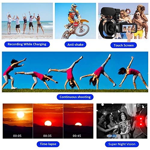Videocamera multifunzione: la videocamera 4K cattura i tuoi momenti meravigliosi in una risoluzione di 4K / 30FPS / 48MP. Con lo zoom digitale 18X è possibile ingrandire e ridurre gli oggetti remoti in modo più chiaro. Inoltre, questa videocamera dispone di numerose funzioni che contribuiscono alla registrazione, tra cui time-lapse, lente di ingrandimento, scatti in serie, autoscatto, effetti speciali a colori, temporale e molto altro ancora.