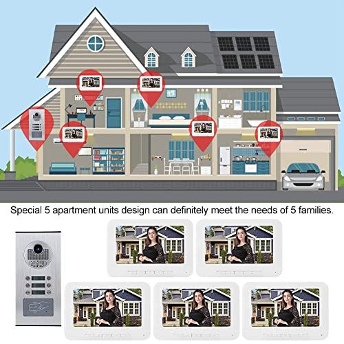 Videocitofono, Visivo Door Phone, Citofono Video Con 5 Display, 1Una Macchina Esterna Impermeabile, Visione Notturna Super Lontana, Citofono Vocale a Due Voci, 7 Pollic Display a Colori HD.