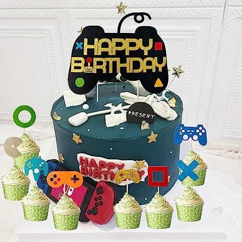 【Topper per torta di videogioco】:Il nostro set di decorazioni per torta di compleanno per videogiochi include 1 toppers per torta di buon compleanno per console di gioco di grandi dimensioni, 12 toppers per cupcake a tema di gioco piccoli, 13 pezzi in totale.