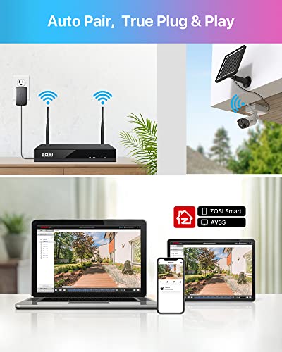 ZOSI 3MP Kit Videosorveglianza WiFi con Batteria Ricaricabile, 3x Telecamera a Batteria con Pannello Solare, Audio Bidirezionale, 8CH NVR con 1TB Hard Disk, Controllo Remoto