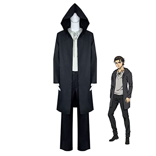 VIDOJI Eren Yeager Giacca cosplay Trench coat con cappuccio Eren Jaeger Costume Final Season Halloween Outfit,S-Black