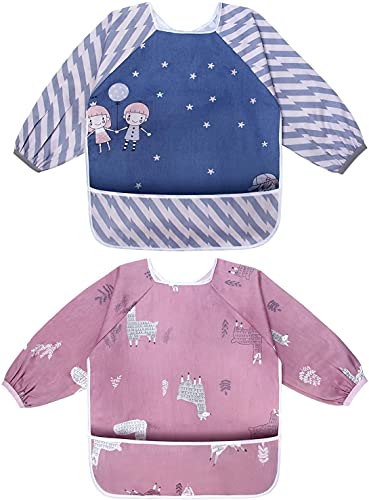 Viedouce Bavaglino Neonato con Maniche, Impermeabile Bavaglino Manica Lunga, Bavaglino Bandana Drool con Tasca Frontale, Grembiule Bavaglino per Ragazzi Ragazze da 6 Mesi a 3 Anni (2 pacchi)
