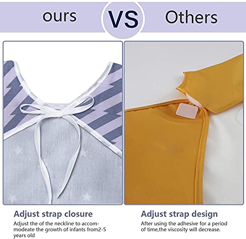 【Comodo impermeabile】- Questo grembiule ha polsini elastici che lo rendono più facile e comodo da indossare e scaricare. La superficie della pettorina è realizzata in puro cotone per proteggere la pelle delicata del tuo bambino. L'interno è realizzato in materiale impermeabile per evitare che i vestiti del tuo bambino si bagnino.