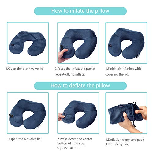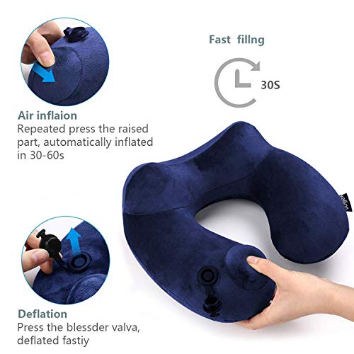 【Gonfiaggio del Pulsante di Pressione】 - Cuscino cervicale viaggio dormire può essere gonfiato e sgonfiato così rapidamente, solo in 0,5-1 min! Cuscino collo viaggio treno, impedisce la diffusione di batteri attraverso la bocca. Prenditi cura della tua salute, da usare sempre e ovunque!