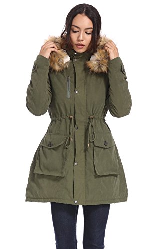Vieliring - Parka da neve, da donna, invernale, lungo, con collo di pelliccia grande, taglie forti Army Grn L