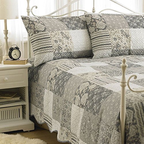 Vienna Patchwork in Rilievo Trapuntato copriletto federe, Poliestere, Grigio, Doppio