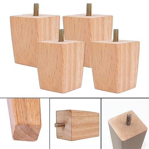 Vientiane Piedini per Mobili in Legno, 4 PCS Piedi in Legno per Divano, Gambe Del Divano per Pavimenti in Legno, Gambe Del Divano in Legno Affusolate per Divano, Armadio E Letto, Con Viti(6cm)