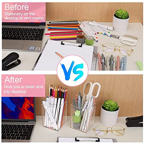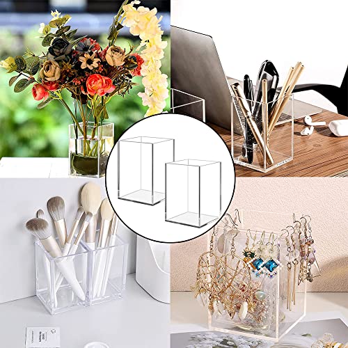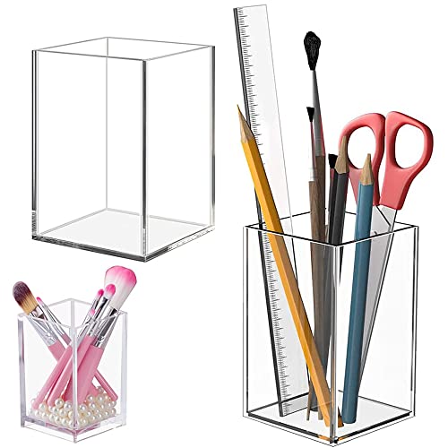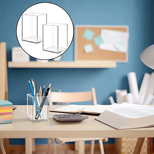 Vientiane Portapenne in Acrilico, 2 Pezzi Portapenne Trasparente, Portamatite da Scrivania di Forma Quadrato, Portapenne in Acrilico Trasparente, Portapenne Da Scrivania per Ufficio, Scuola, Casa