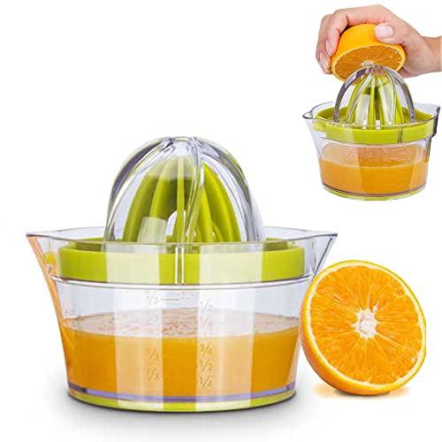Facile da usare: il misurino trasparente per succo può vedere chiaramente la capacità del succo e il filtro può filtrare i semi e i residui di frutta per rendere il succo più delizioso. Gli spremiagrumi sono adatti per agrumi come arance e limoni. Con poche semplici operazioni, puoi preparare a mano un bicchiere di succo d'arancia / limone fresco, sano e originale al 100%.
