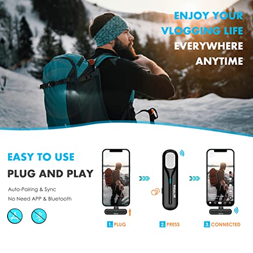 Abbinamento automatico Plug and Play: il microfono lavalier wireless utilizza una tecnologia wireless avanzata a 2,4 GHz e non necessita di APP, Bluetooth o Internet. Basta collegare il ricevitore al dispositivo e accendere i trasmettitori per connettersi automaticamente. E questo microfono wireless da bavero utilizza la tecnologia di sincronizzazione automatica in tempo reale, senza alcun ritardo nella trasmissione, che riduce estremamente il video post-editing.