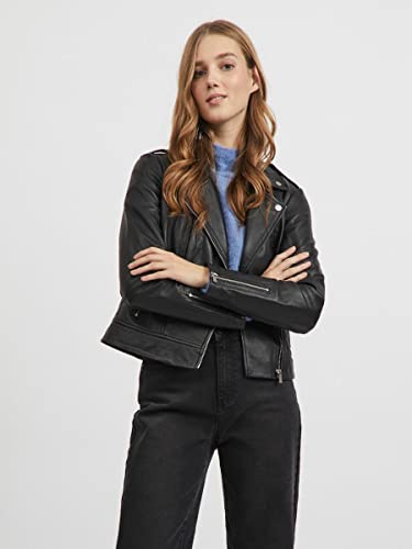 Vila Vifeli Giacca in Pelle su-Noos, Nero, 38 EU Donna