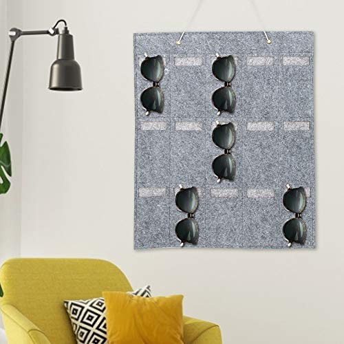 VIFER Borsa da 15 Tasche appesa Custodia per Occhiali da Sole Borsa da Appendere Appendi Gioielli Organizzatore Occhiali da Sole Borsa Pieghevole in Feltro(Grigio)