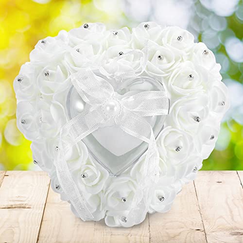 VIFERR Scatola per Anelli Scatola per FEDI Nuziali a Forma di Cuore Romantico Cuscino per Cuscino con Anello Decorativo con Strass Rosa(Bianca)