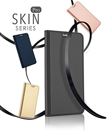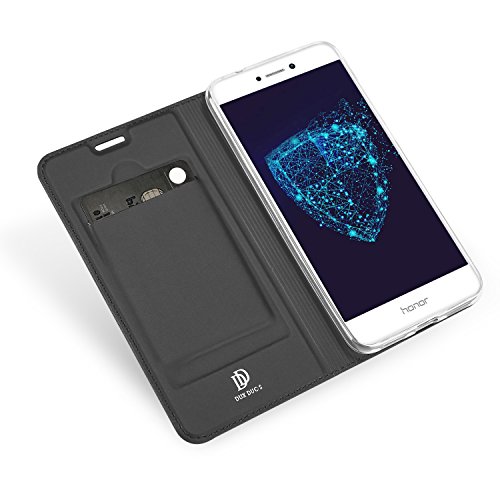 VIFLYKOO Huawei P8 Lite 2017 Custodia, Huawei P8 Lite 2017 Flip Cover con Slot per Schede Wallet Shell per Huawei P8 Lite 2017 Case - Grigio Scuro