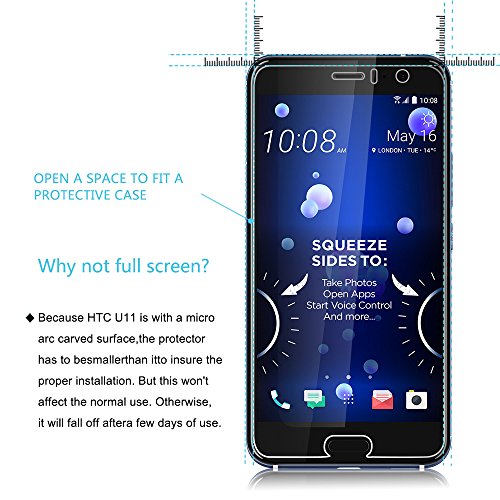 5.Ricordo gentile: A causa del bordo rotondo di HTC U11, la Protezione dello Schermo NON Coprire l'intero Schermo, ma solo la zona pianeggiante.