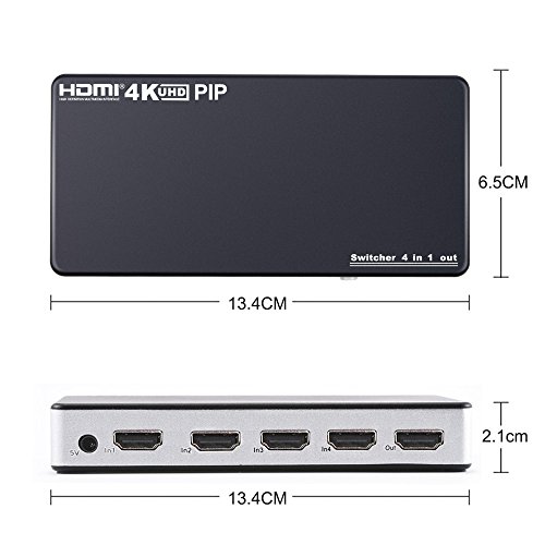 VIFLYKOO HDMI Switch, 4x1 (4 Ingressi 1 Uscita) Commutatore HDMI (Supporta 3D 4K x 2K 1080p Full HD HDCP e Pip) con Telecomando IR per TV, PC, PS3 / 4, Xbox, HDTV, Dvd, Blu Ray ECC.