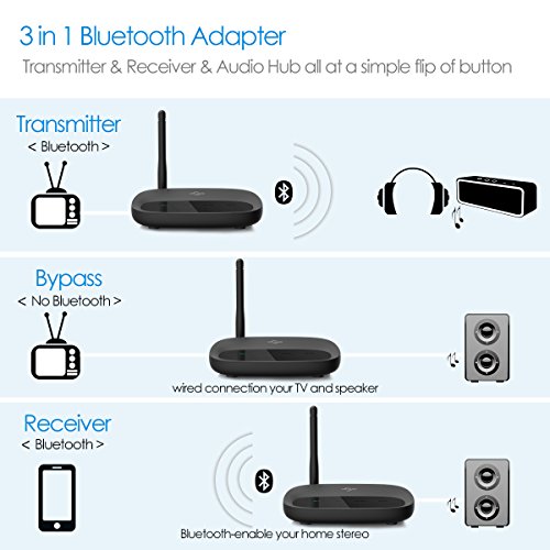 Abilita la trasmettitore bluetooth tua TV o qualsiasi altra sorgente audio al Bluetooth: Aggiungi funzioni Bluetooth a TV, Videoregistratori, Amplificatori e ogni altra sorgente sonora. Nota bene, la vostra TV o altro dispositivo audio, deve avere l'uscita analogica, jack da 3,5mm.