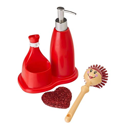 Dimensioni: 17 x 9 x 23 cm. Capacità dispenser: 200 ml. Colore: rosso.
