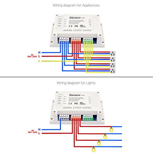 VIGICA Sonoff 4CH Wireless Switch 4 Channels Wifi Remote Control Smart Home Applicances Automation Work with Amazon Alexa Google Home
