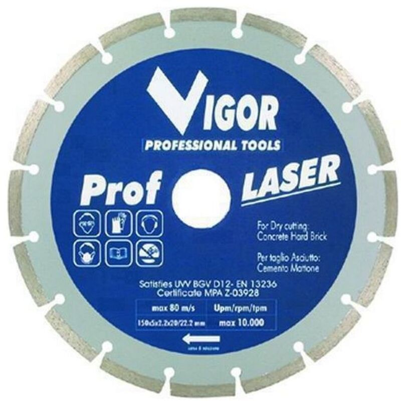 Dischi diamantati a settori segmenti saldati al laser a norme en-13236 mpa certified max rotazione ammessa 80 m/s max giri utensile 10000 rpm per taglio a secco